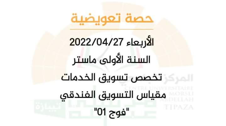 حصة تعويضية – أعمال موجهة – للأساتذة بولعوينات حياة ليوم الأربعاء 27/04/2022