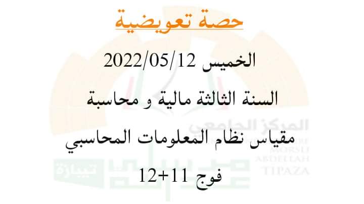 حصة تعويضية للأستاذ شيكر أيوب ليوم الخميس 12/05/2022السنة الثالثة مالية و محاسبة مقياس نظام المعلومات المحاسبي