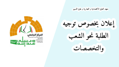 إعلان بخصوص توجيه الطلبة نحو الشعب والتخصصات