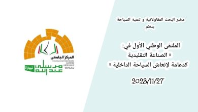 مخبر البحث المقاولاتية و تنمية السياحة ينظم الملتقى الوطني الأول في: ” الصناعة التقليدية كدعامة لإنعاش السياحة الداخلية ” يوم…