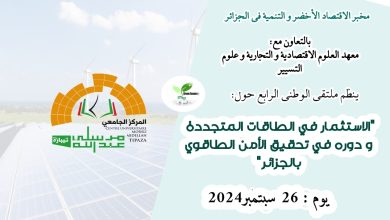 الملتقى الوطني الرابع حول ” الاستثمار في الطاقات المتجددة و دوره في تحقيق الأمن الطاقوي بالجزائر ”