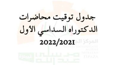 جدول توقيت محاضرات الدكتوراه السداسي الأول 2022/2021